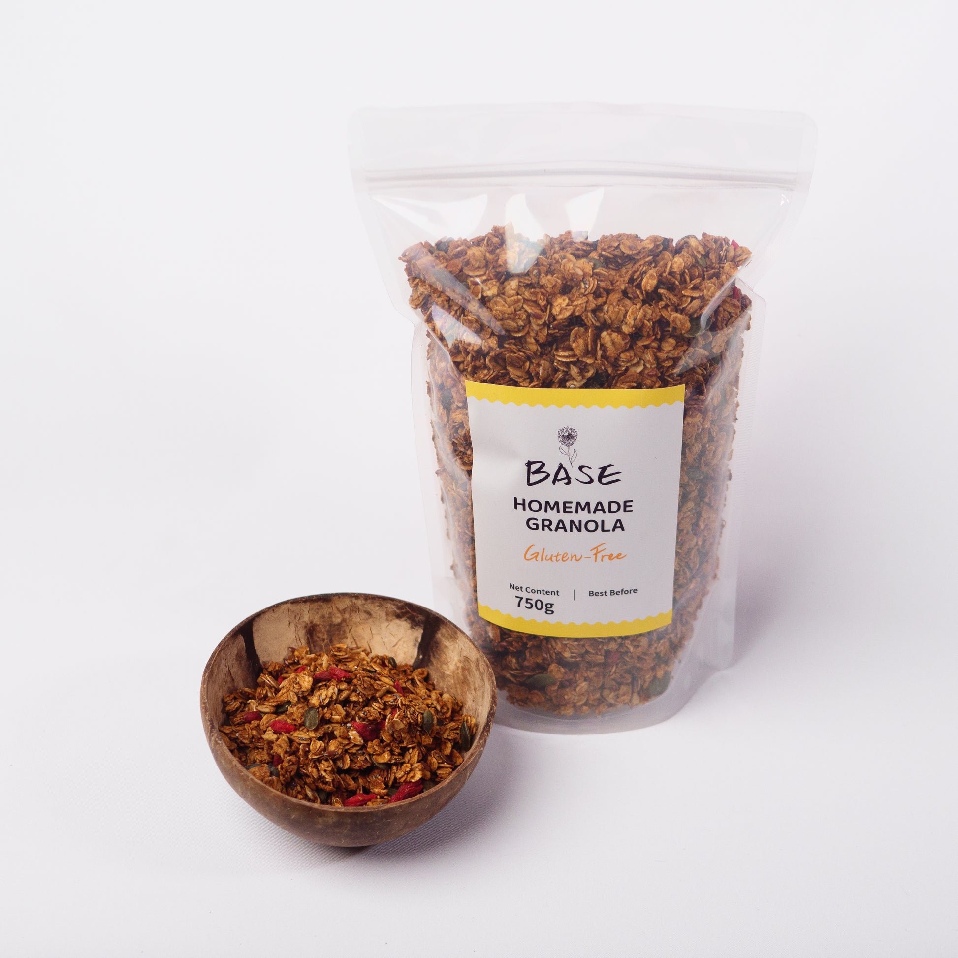 Our Gluten-Free Granola is made by using gluten-free rolled oats. This granola is also nut-free and vegan friendly.